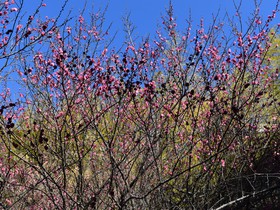 山の斜面に約4000本の梅が咲き誇る様は圧巻です。