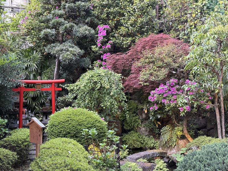 おんやど惠の中庭は、小さいながら季節の花が楽しめます。 現在はツツジが見頃を迎えています。 足湯でのんびりと温まりながら、美しく咲いているツツジをお楽しみください。 「箱根ジェラート」を召し上がりながら、という楽しみ方もあります。
