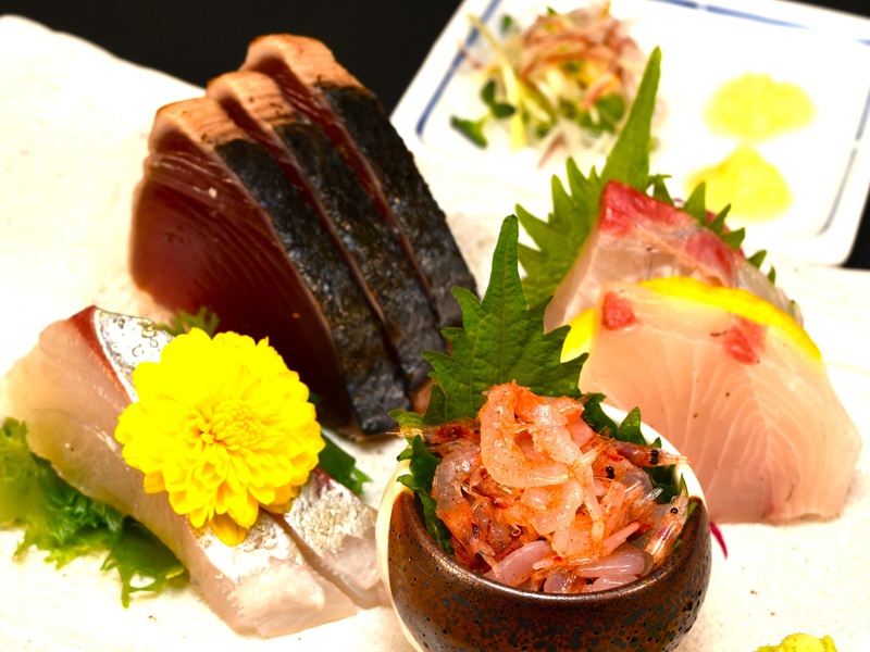 桜エビとカツオのたたきなどのお造り、桜エビのかき揚げ、桜エビご飯と、この季節ならではの、桜エビ料理が特徴です。