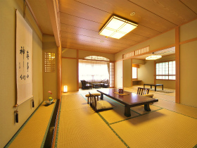 【お部屋】本間12畳+次の間8畳の特別室をご利用いただきます。秋田杉の行燈など、しつらえや調度品にもこだわったワンランク上のお部屋となります。